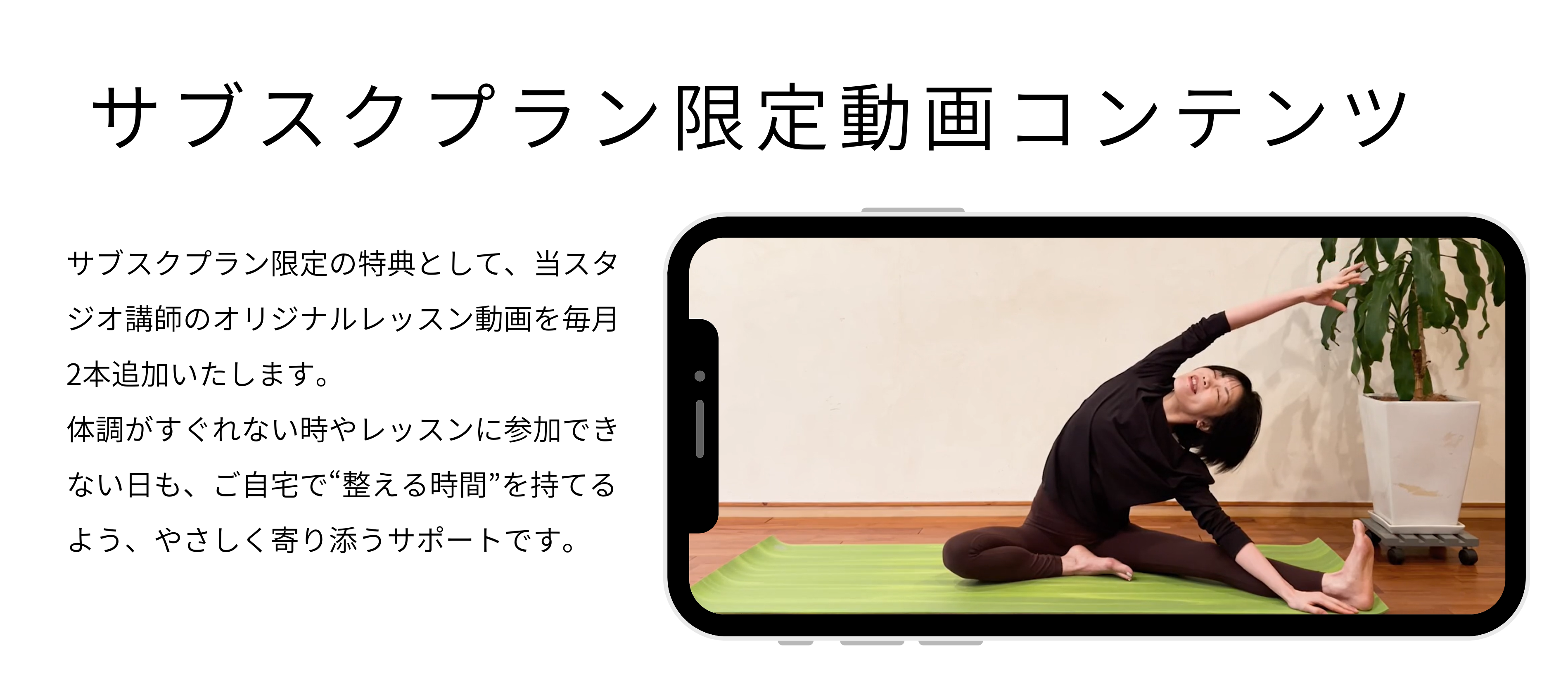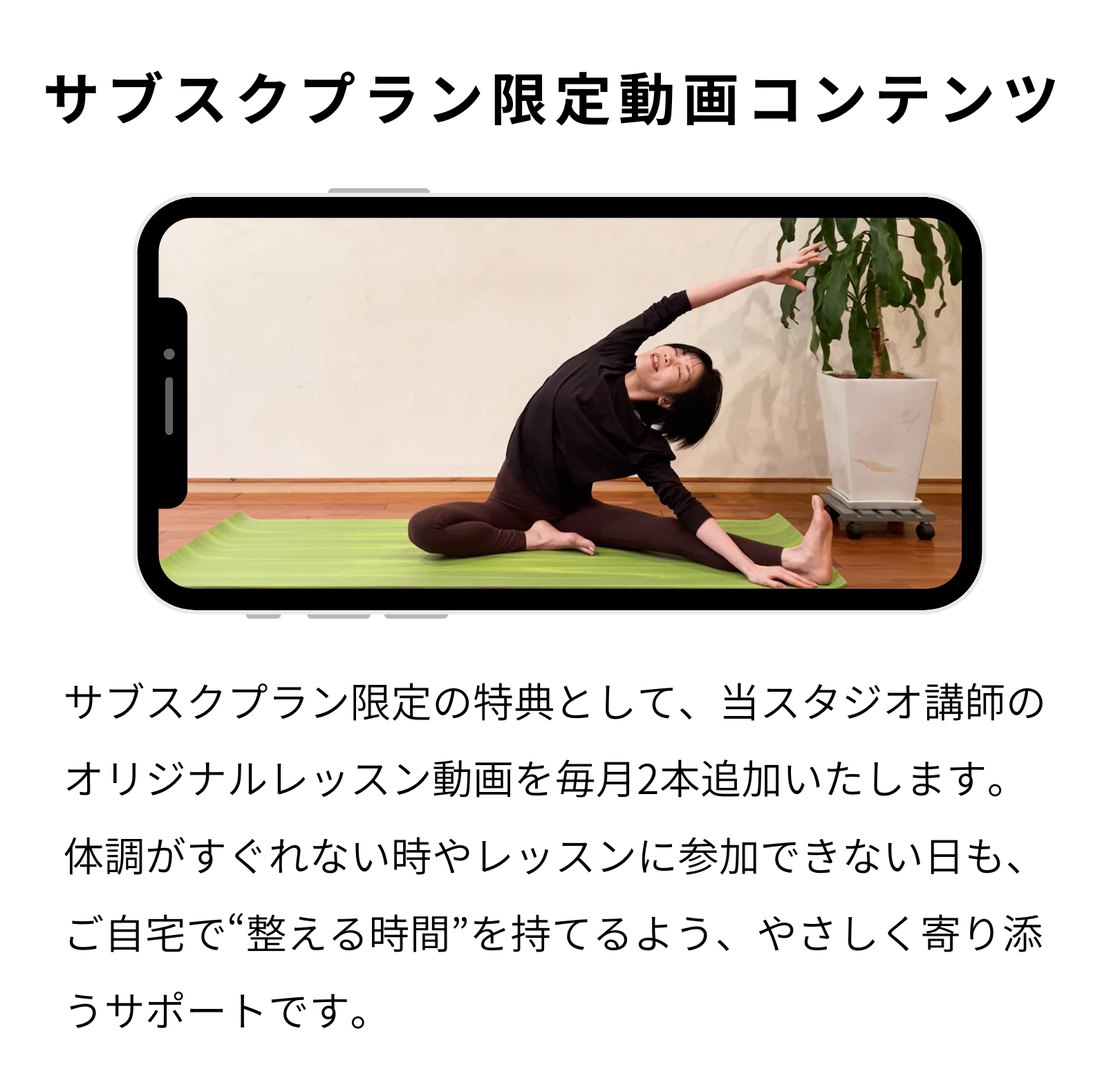 ・サブスク限定で、毎月2本のスタジオレッスン動画をご視聴いただけます。