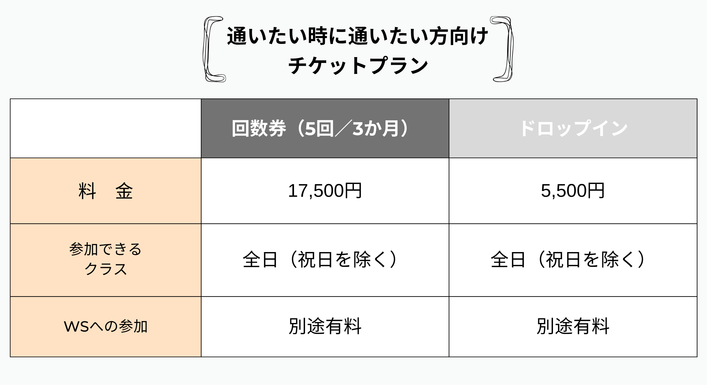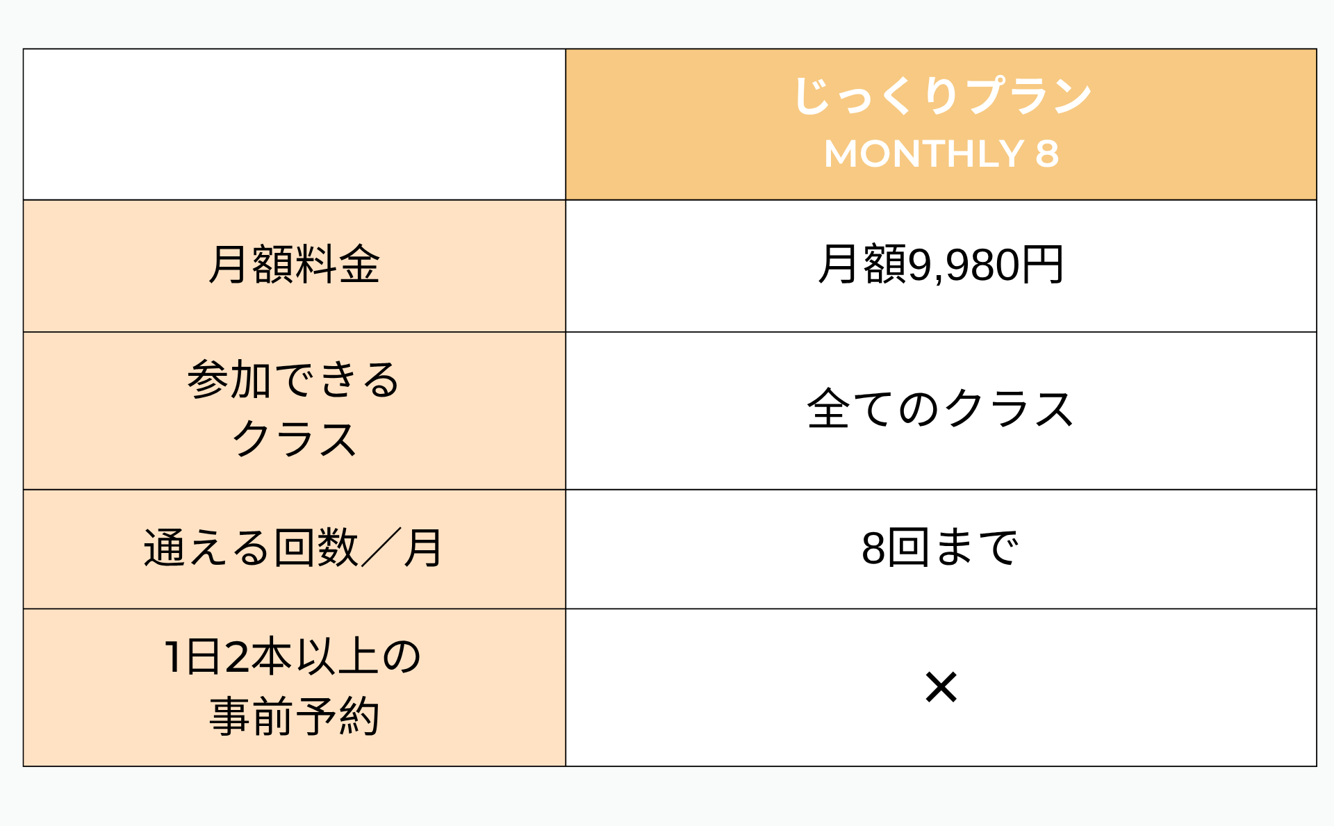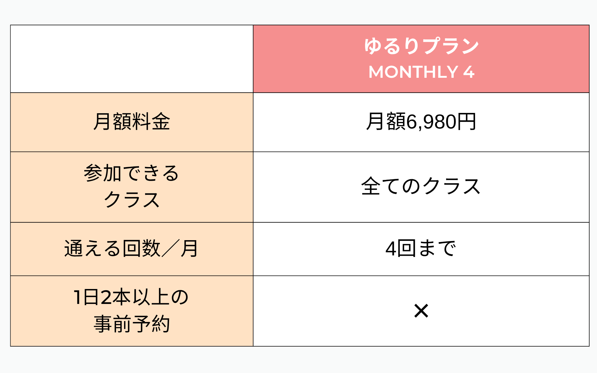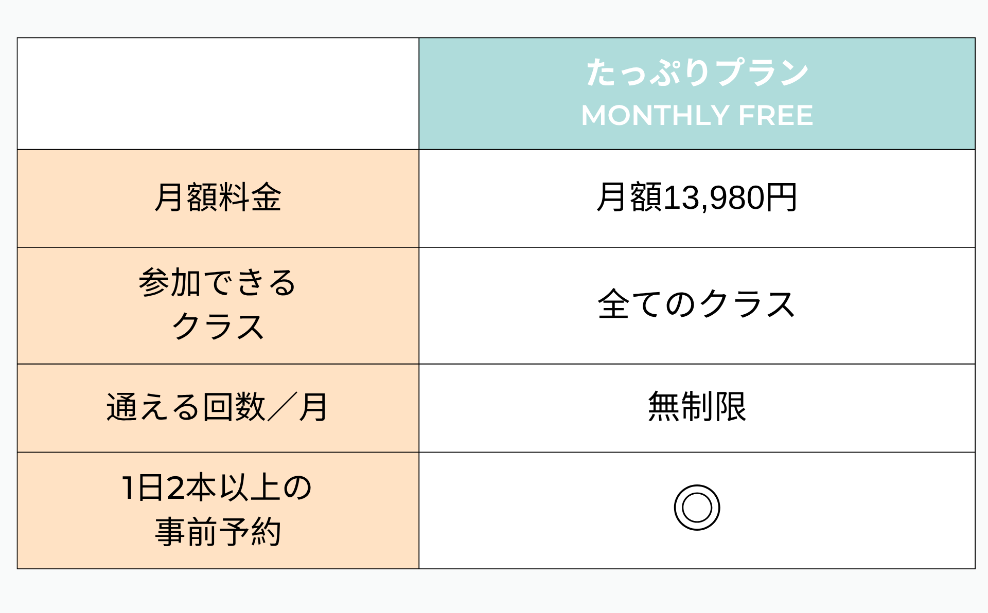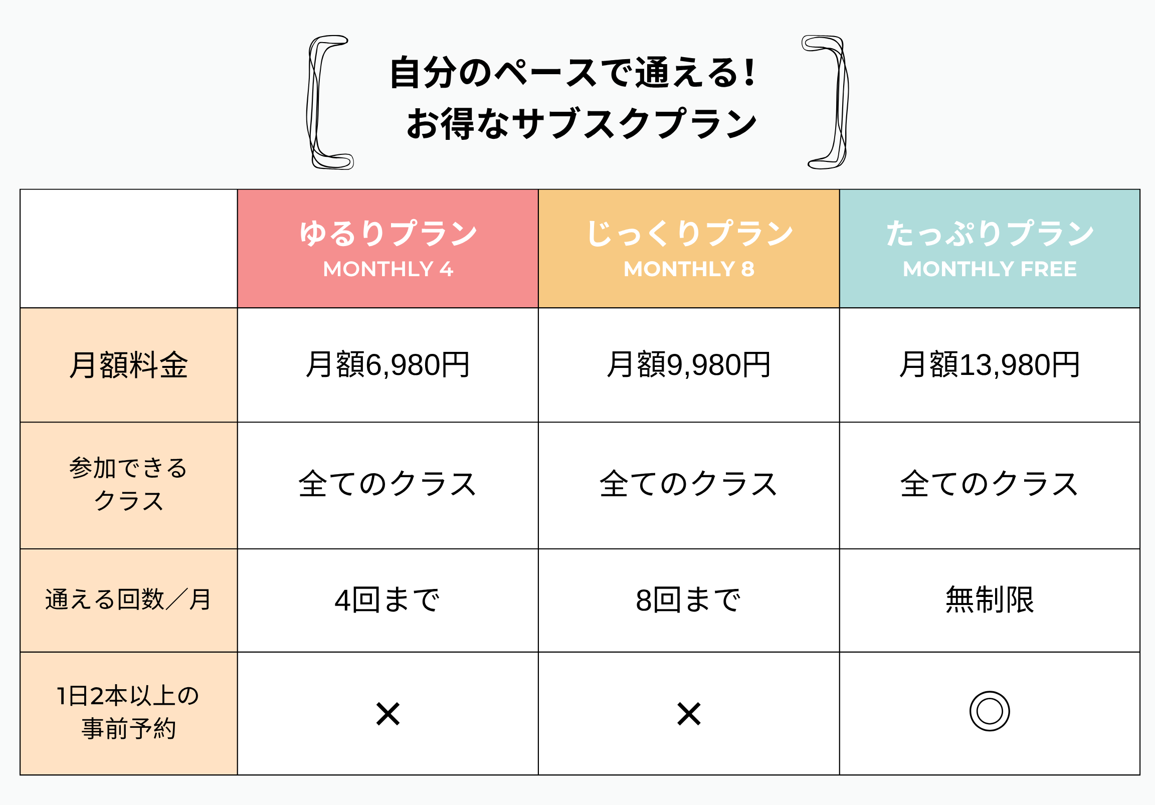 ※ たっぷりプランのみ事前の連続予約が可能です/空きがあれば、他プランの方も2本目のクラスを続けて受講いただけます。