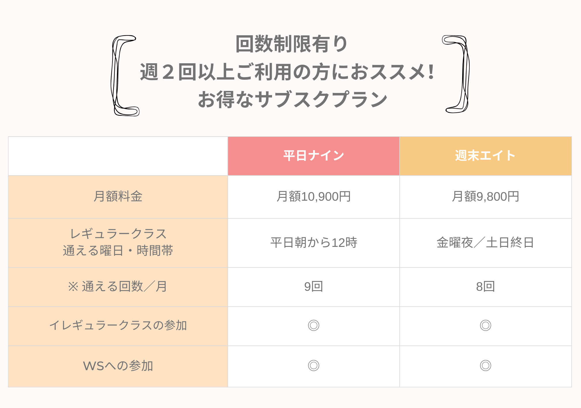 ・プラン外のクラスをご利用の際は1,000円/回が発生します。