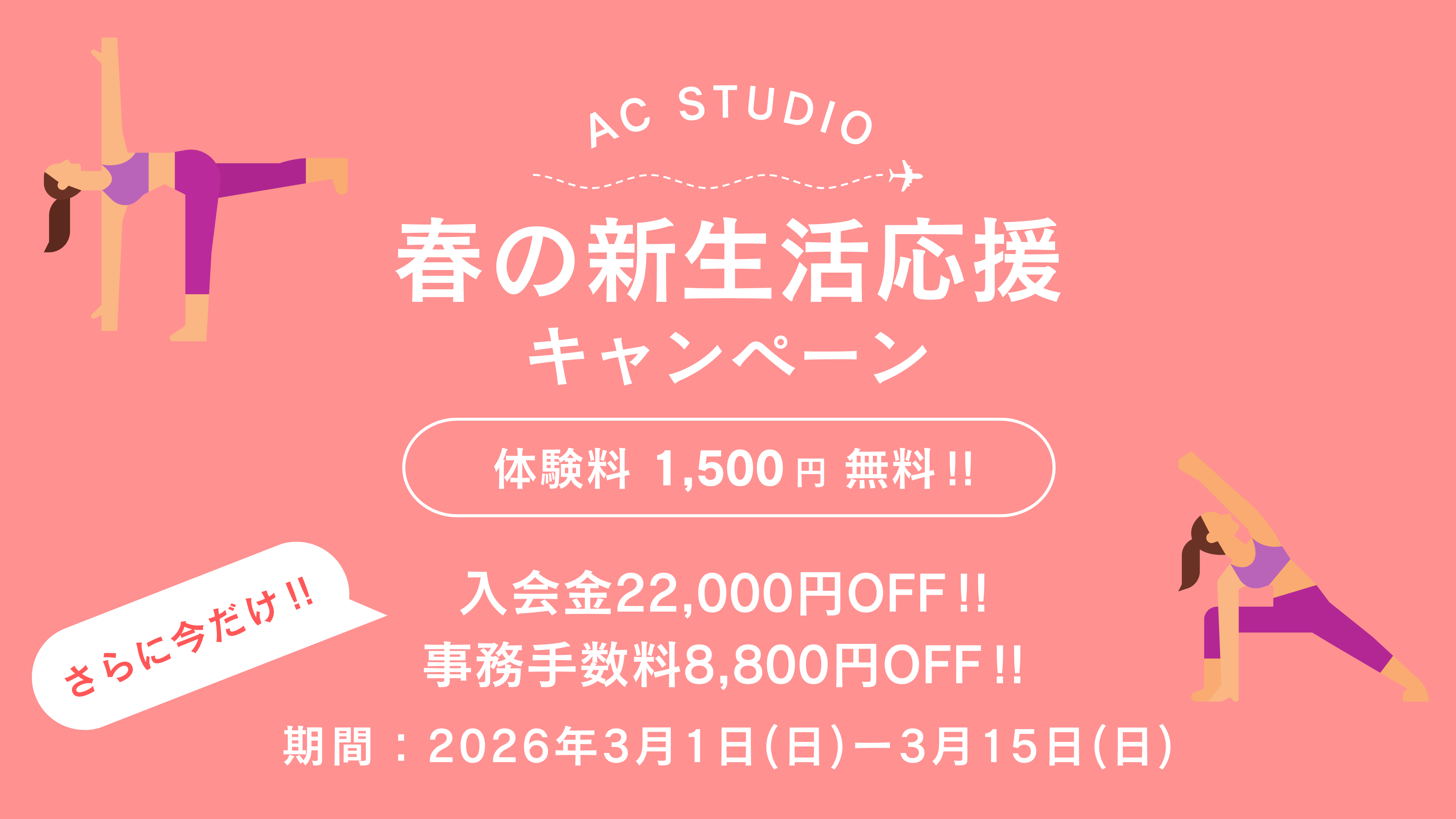 ヨガマットは無料レンタルOKなので、手ぶらで気軽にお越しいただけます。